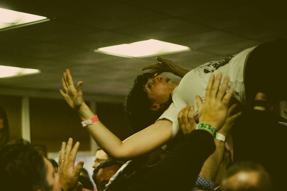 Um coração que se começou a encher com os Cave Story, que voltaram este ano para tocar, desta vez, no quentinho e que fecharam um enorme 2015 com chave de ouro, naquele que foi um concerto sobretudo competente e onde não faltaram os êxitos - "Southern Hype", "Hair", "Richman" et al - nem algum avacalhanço noise rock (do bom). E se neste parágrafo falta qualquer coisa, é só porque já os vimos uma dúzia de vezes este ano e já não há muito na língua portuguesa por onde se possa pegar para os descrever. But we can do it in english if you'd like. それとも日本語で. Competência também não faltou aos d3ö, naquele que foi o seu regresso ao Barreiro Rocks treze anos depois, para apresentarem o rock musculado e dançável que os caracteriza, com as filas da frente manifestamente irrequietas, tal como Toni Fortuna, que a dada altura trepa os espaldares do pavilhão dos Ferroviários (porque nem seria Barreiro Rocks se alguém não o fizesse) e logo depois "força" o público barreirense a ajoelhar-se em adoração ao deus eléctrico. Can I have an hallelujah? Claro que podes, meu.