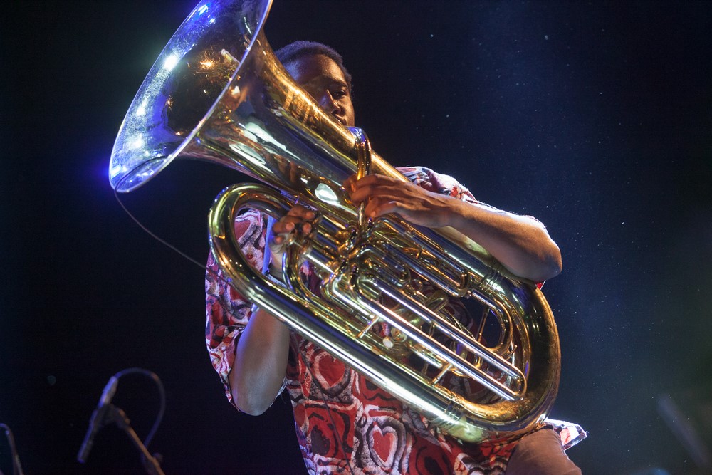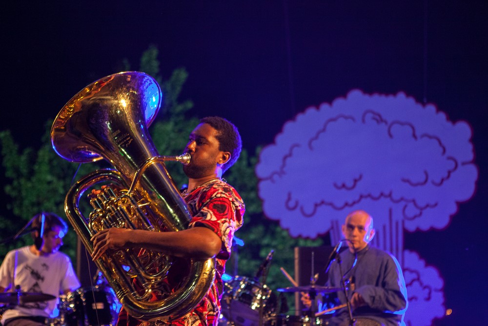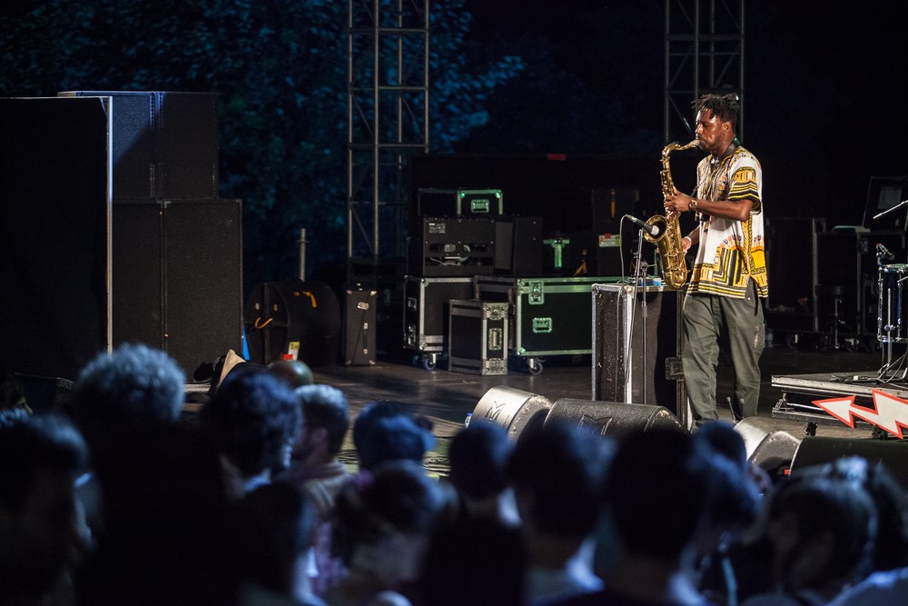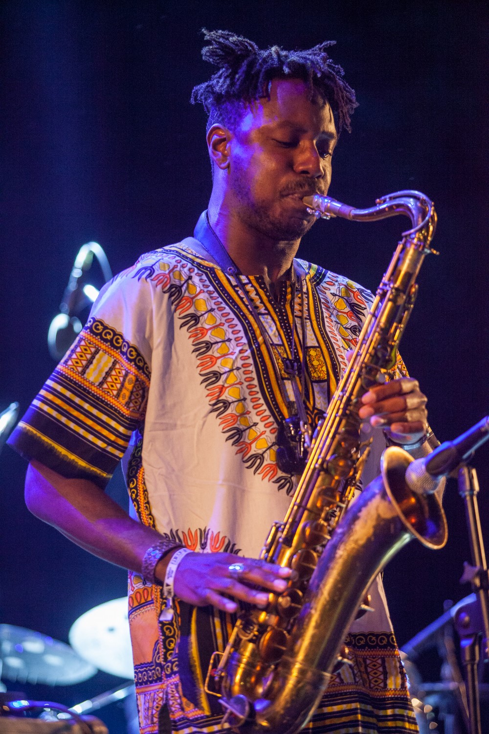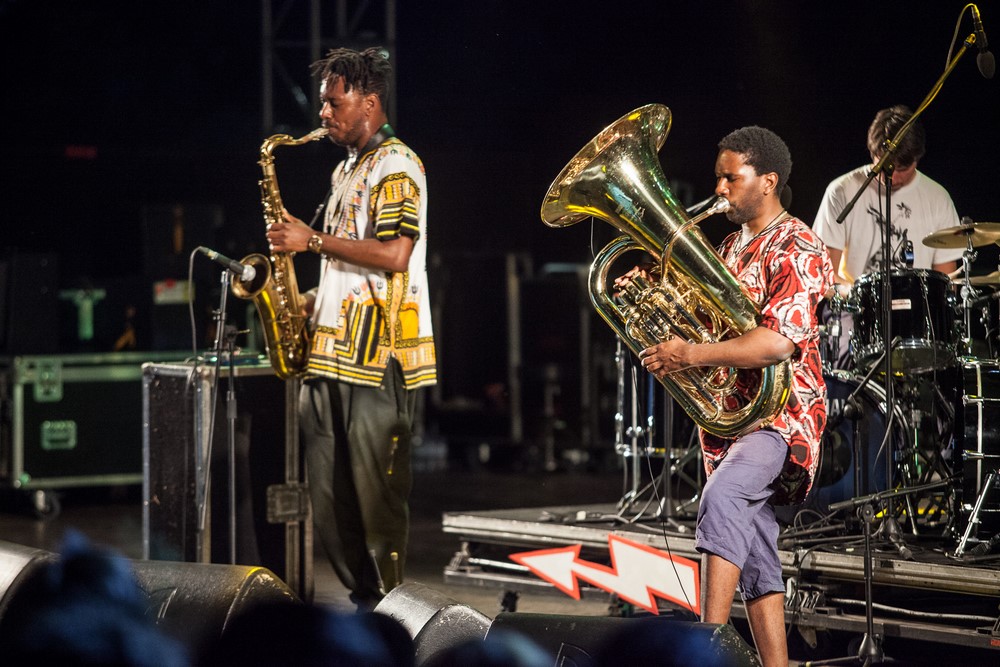 De volta ao palco principal, actuaram os ingleses Sons of Kemet. Ao leme, no saxofone tenor, estava Shabaka Hutchings; na tuba, não estava o virtuoso Oren Marshall, membro original da banda que entretanto saiu, mas o seu substituto, Theon Cross; e o apoio rítmico estava assente nas baterias de Seb Rochford e Tom Skinner. A configuração instrumental parte de uma natureza jazz, a música é original, com raízes africanas. O quarteto desenvolve uma música altamente enérgica, assente nas frases do saxofone, repetidas em crescendo enérgico, secundado pela tuba, que neste contexto acumula funções: cumpre o duplo papel de substituição de contrabaixo e de segundo solista; e a dupla de baterias intensifica o carácter altamente rítmico desta música. O público foi desde cedo conquistado e não escondeu a sua completa devoção. Temas como “Play Mass” fizeram o público vibrar, dançar, e mesmo em momentos mais relaxados, mesmo durante o solo da tuba, o público relevou uma atenção reverencial. É incrível ver uma banda de raíz jazzística, que não cede a facilitismos, que nem sequer toca covers rock, a fazer a festa e a conquistar o público de um festival destes (quantos dos presentes já teriam comprado um disco de jazz na vida?). É certo que a margem para a improvisação é limitada, mas exemplos como os Sons of Kemet ou Kamasi Washington mostram que é possível produzir jazz original e levá-lo a um público mais jovem e alargado.