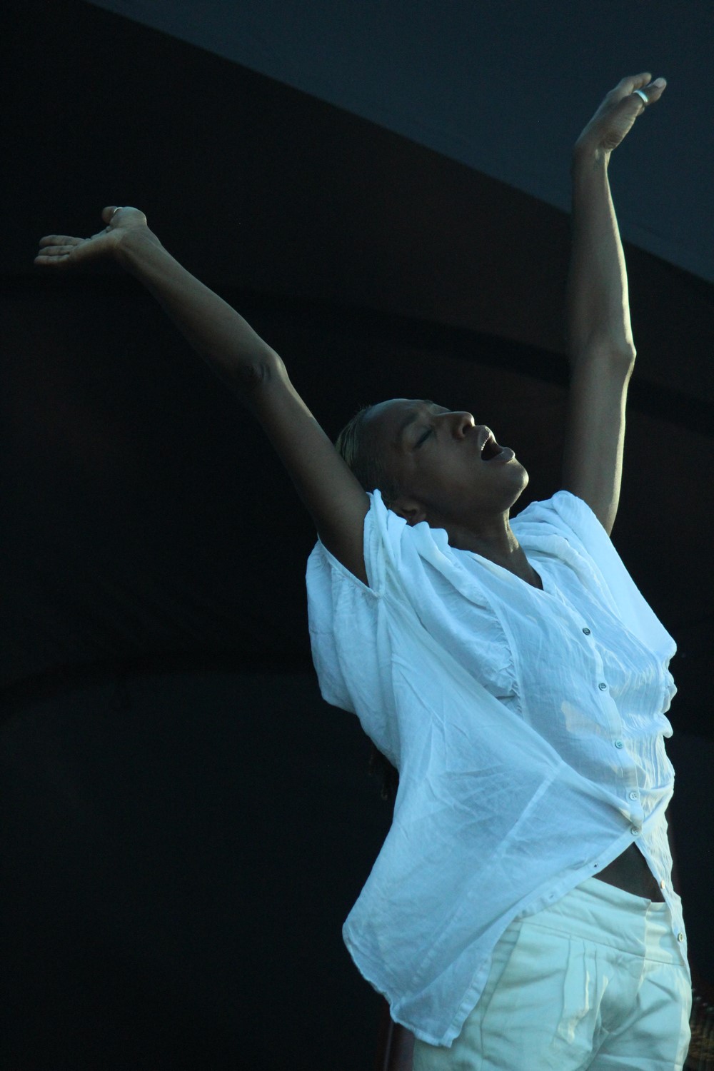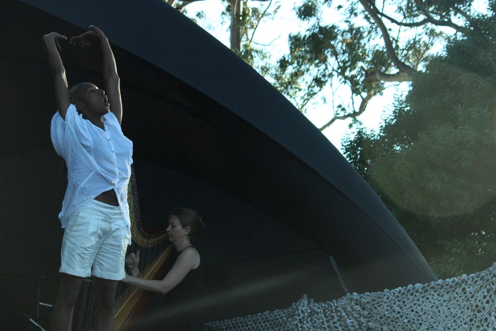 De Domenique Dumont pouco ouvimos - mas soou bem ao longe naquela ilha quase paradisíaca (só falta mesmo dar para mergulhar naquelas águas). Mas ouvimos, isso sim com atenção, uma espécie de aparição chamada ALA.NI. Parte diva por chegar, parte cantora jazz, a fazer lembrar Billie Holiday, ALA.NI nasceu em Londres, e tem uma voz de outro mundo. A sua figura, esguia, negra, belíssima, contrastava com o ar sério da harpista que a acompanhou. Mas musicalmente tudo fez perfeito sentido. A certa altura parecia que tínhamos todos viajado até ao passado, aos anos 30 ou 40, e que tudo parecia mais fácil e naïf por lá. Uma coisa parece certa: o mundo ainda vai ouvir falar muito de ALA.NI.