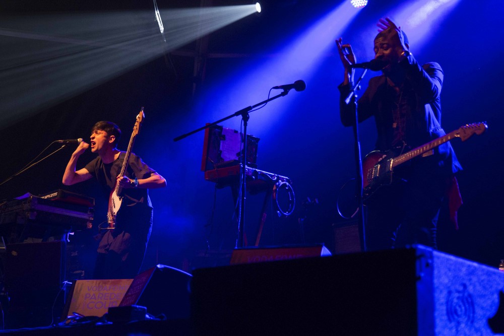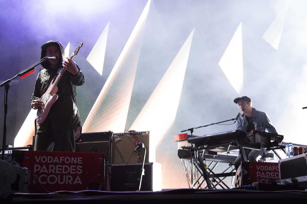 O nome ajuda. Eles queriam algo mítico que os identificasse e Portugal foi o melhor que conseguiram (lettering a fintar o destino e a aportar na época dos Descobrimentos foi a prova da encarnação do espírito luso descoberto por acaso). Ao longo dos concertos a que pudemos assistir percebeu-se a leveza nas actuações, por vezes tão leves que passavam ao lado. Com Portugal. The Man sentiu-se leveza mas aquela descrita por Milan Kundera no eterno “A Insustentável Leveza do Ser”: o peso não atroz ou negativo, foi espesso e significativo no conteúdo, teve volume… Eles não foram lineares, bem pelo contrário. Vaguearam como quiseram pelo seu portfólio (“Hip Hop Man” e “Atomic Man” no inicio), tiveram tempo para nos levarem à adolescência com os Oasis e a sua “Don’t Look Back In Anger”, música-cauda da cabeça “Everything You See”, pegaram-nos pela mão no hino “ Modern Jesus” (entoado por toda a plateia) para irem desaguar numa “guitarra fraudulenta” de John Gourley que os levou a prolongar “Purple Yellow Red And Blue” para lá das margens do rio que a sustém. Invocaram a sua última passagem por PdC em 2009 e o cartaz que os deliciou (nesse dia há 7 anos, os Portugal dividiram o palco com Peaches e Nine Inch Nails) e agradeceram, assim, humildemente por tudo o que Paredes lhe deu. Eles foram bons e nós também agradecemos.