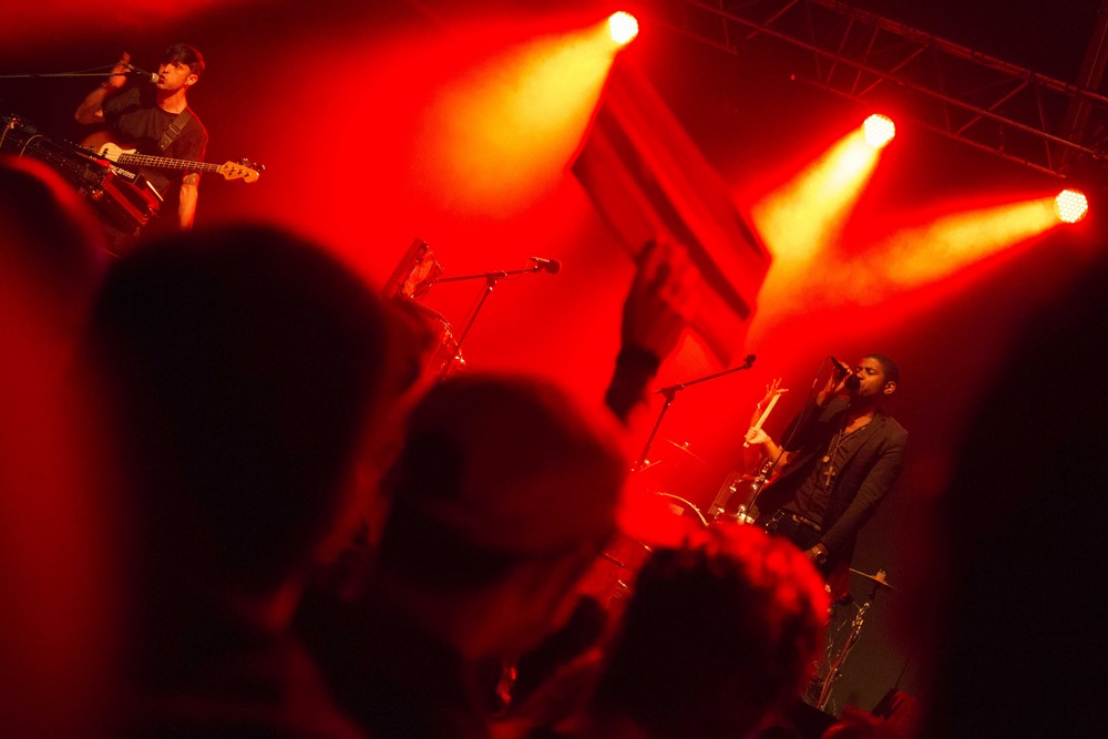 Música de matriz “negra” que teve continuidade num dos melhores concertos que tivemos oportunidade de presenciar. Vindos do castigado sul dos Estados Unidos (Geórgia - aliás, começaram o concerto com um discurso contra a villência policial contra a comunidade negra) para partir tudo com um estranho evangelho místico/profético ponte entre a soul moderna e a sofrida e frenética soul vinda dos anos 50. Ensopado de psychadelic soul com gospel e rock (art, noise e experimental), os Algiers encabeçados pelo father Franklin James Fisher (vocalista) e pelo eléctrico Ryan Mahan (baixo e sintetizador) foram xamanes, pregadores da boa nova e administradores executivos de um missal de música com cabeça tronco e membros (muitos membros, bastava admirar o gesticular “parkinsoniano” de Ryan Mahan) que encantou o lotado recinto secundário. Com apenas um longa-duração na algibeira, Algiers de 2015, a banda norte-americana (pela segunda vez em Portugal no espaço de três meses) lançou-se sobre o que tem de punho fechado, o Sul que se liberta em música (post-worldbeat/punk), e fê-lo com competência e bom gosto de que são prova "Black Eunuch", "Remains" ou o portentoso single "Blood". O público, esse, assinou por baixo a sua libertação.