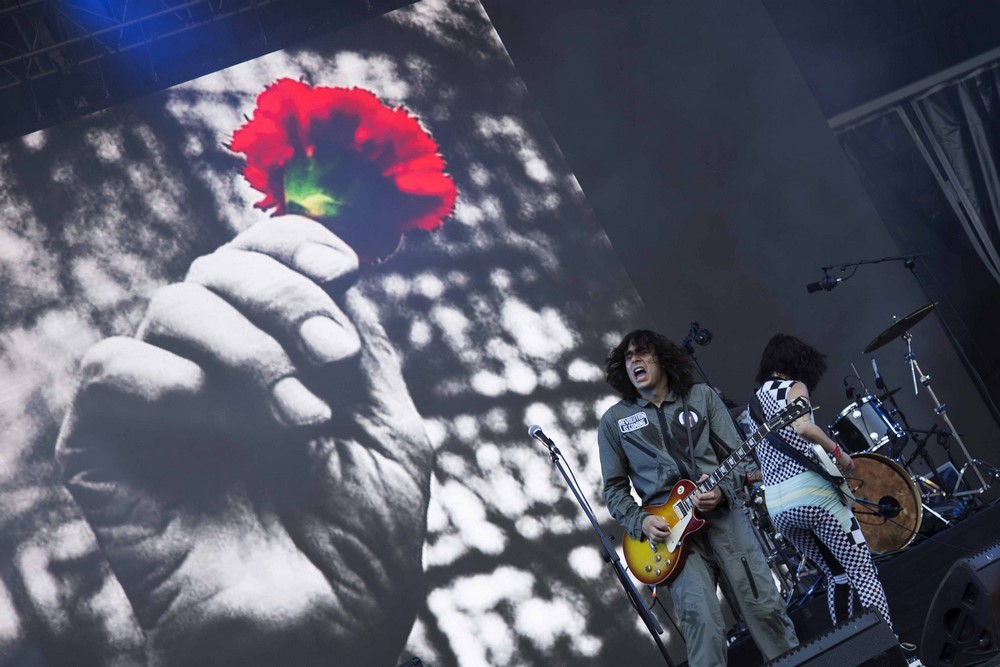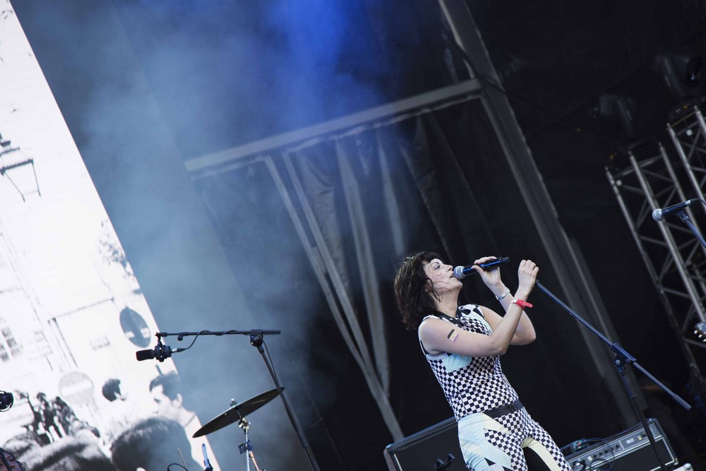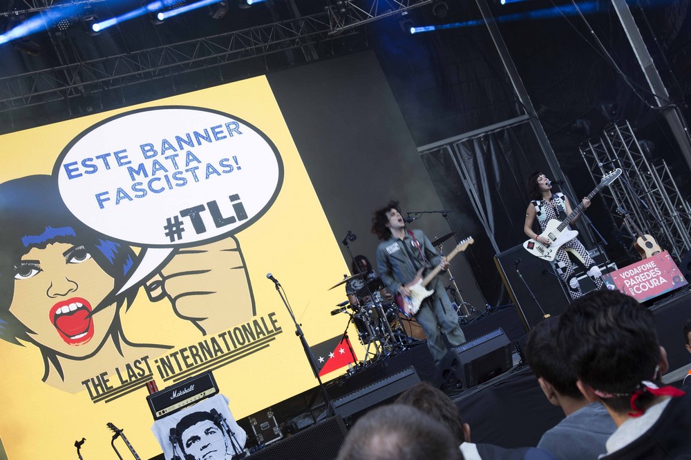 Chegamos a tempo de ouvir quatro músicas desta “Internacional”. De punho cerrado, como se quer, a banda nova-iorquina é um caso de misplacing. A potência da actuação merecia uma hora mais tardia, merecia mais público e mais atenção. Em suma, merecia mais para fazer jus à atitude punk e voz imperiais de Delila Paz… Situemo-nos, porém, apenas naquilo que pudemos ouvir, e o que ouvimos foi bom. Encabeçados por um “banner que mata fascistas” (piscar de olho à nossa Revolução – os familiares do guitarrista Edgey Pires são de Arcos de Valdevez) que se prolongou nas referências ao fim da “mais escura e longa das noites” que este país viveu com imagens de fundo do 25 do quatro de 74. Fogo e precisão porque, afinal de contas, “a cantiga é uma arma de pontaria”. Foram precisos (Delila ainda procurou, junto do público, saber como se diz “power to people” em português) e mereciam mais…