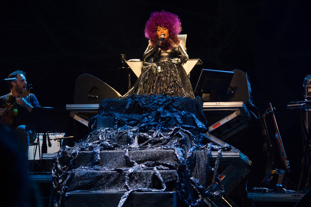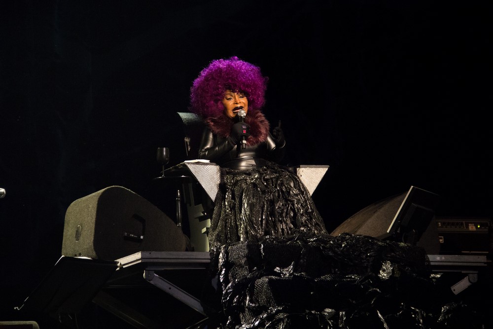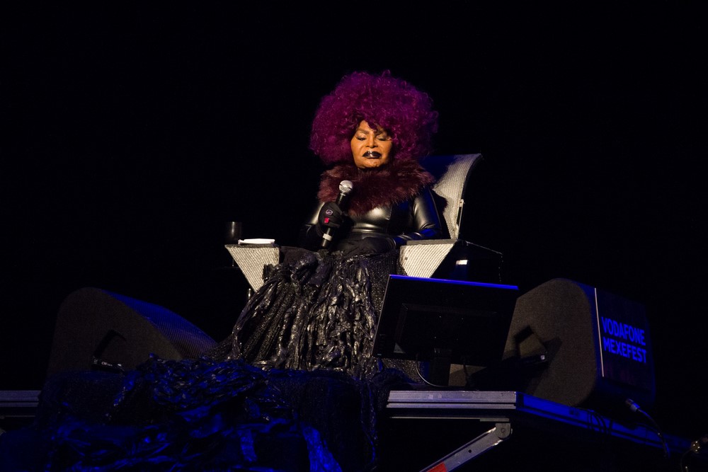«O Vodafone Mexefest apresenta o espectáculo A Mulher Do Fim Do Mundo», ouvimos, à medida que é apresentada a banda e a direcção artística. Depois, ei-La em cima do trono: Elza Soares, Mulher de mil vidas e um só coração. Ou talvez o contrário. Ou talvez a única coisa que interessava ver no Mexefest, isto que era mais que um concerto, era um gesamtkunstwerk feminista que entrou Coliseu dentro para o derrubar à força de um vozeirão. A mesma Elza Soares que pede, entre gorgolejos, que a deixem cantar até ao fim no disco que dá nome ao espectáculo, no grandioso disco editado o ano passado, e que o repete aqui em Lisboa, como deverá ter repetido em Aveiro e Porto dias antes. Se alguma coisa nos ensinou 2016 é que os grandes artistas estão a olhar para a sua morte, desafiando-a, citando-a. Depois de Bowie e Cohen, não há como não ver nesta simples frase - que é uma frase de luta e não de desistência - um terrível presságio. Esperamos, naturalmente, que não. Porque queremos voltar a vê-La, Elza, brasileira, negra, Mulher, que dá boas noites à «gente altamente fixe» diante de si, que surge Mãe-Rainha por entre o caos sonoro potenciado pela Sua banda, aliando a ginga brasileira ao experimentalismo punk. Porque este samba de fim do mundo intitulado "Pra Fuder" merece ser escutado - ou encarnado - vezes sem conta. O disco foi apresentado de légua a légua, as luzes vão baixando e o elenco inteiro fita-A, em veneração, enquanto o público vai correspondendo da forma mais básica possível para não soar a sacrilégio: «Ó Elza, cadê você, eu vim aqui só p'ra te ver»... Não foi um cometa que passou pelo Mexefest. Não foi nada de metáfora alguma. Foi Elza, sinónimo de si própria, quem por ali esteve. Que privilegiados somos. (PAC)