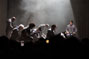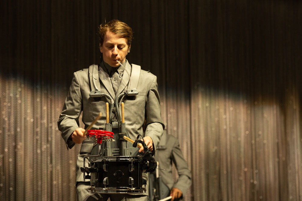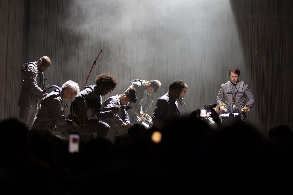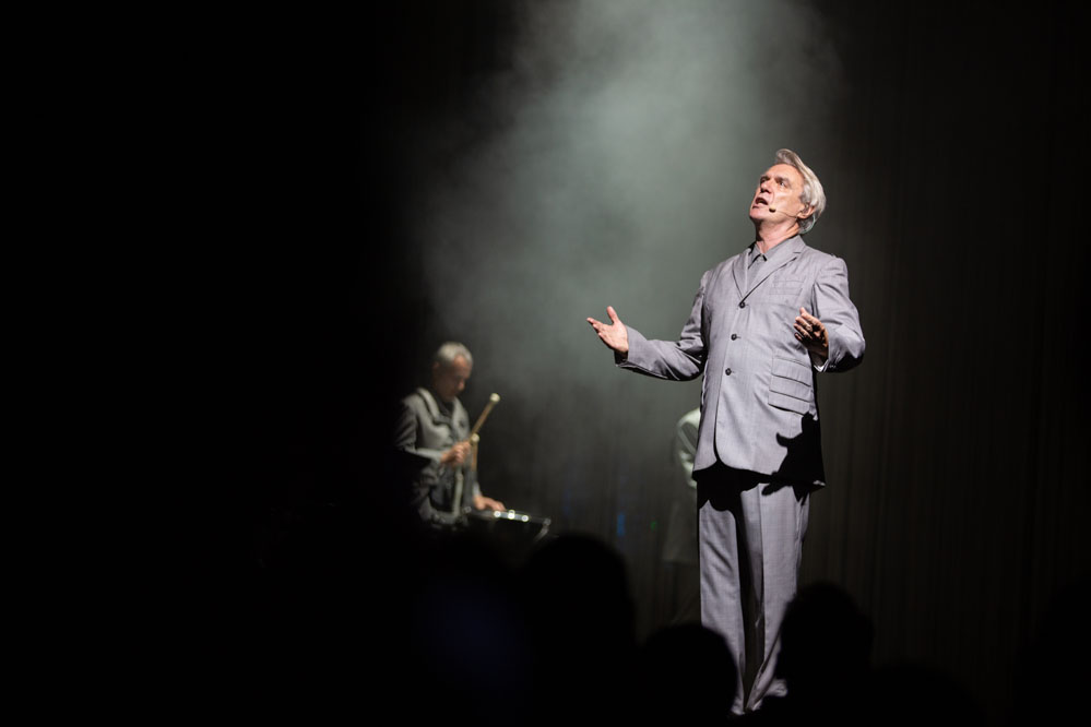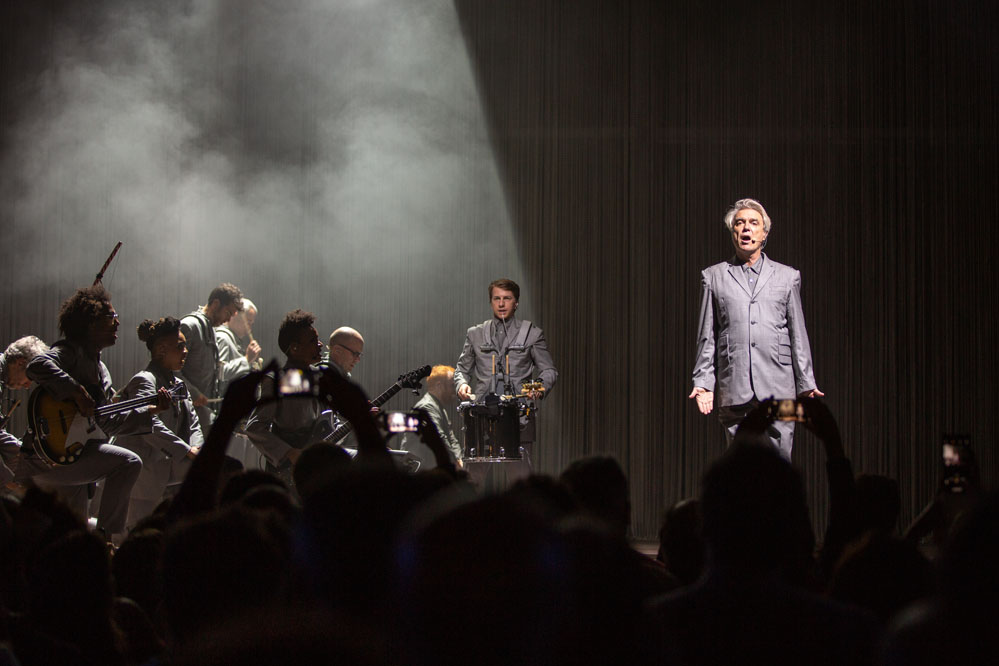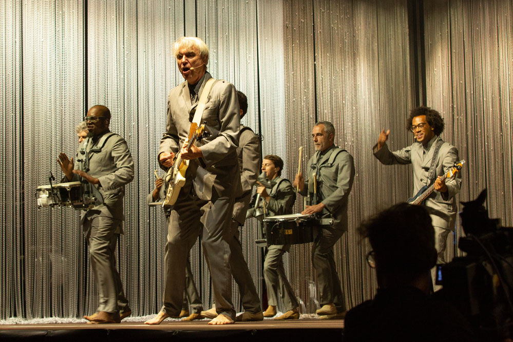 A actuação, além da vertente musical, incluía uma forte componente cénica. Além de interpretarem os temas em tempo real (“não há playback”, disse Byrne), o grupo de músicos (mais de uma dezena) entrava num permanente jogo de dança, tudo coreografado ao milímetro, num espectáculo completo. O grupo atacou o repertório versátil com uma interpretação instrumental impecável, onde o movimento da dança não atrapalhava. Já a voz de David Byrne, continua perfeita, mesmo nos temas mais exigentes. Pelo meio não faltou um apelo à participação cívica (votem!), e mais para o fim mandou a casa abaixo quando chegou “Burning down the house”.