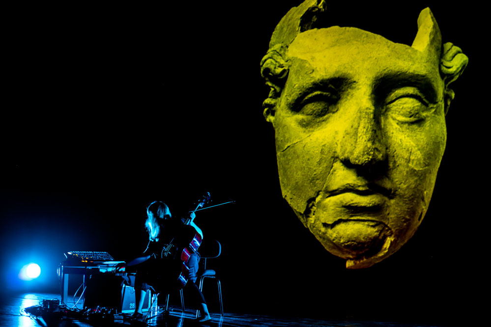 Não houve espaço para poncha, na Madeira, porque já se lhe conhecia o sabor, mas houve-o para Nikitas - uma bebida tão emasculada quanto o é gostosa, e que tempera na perfeição um passeio pela zona de restauração até ao Barreirinha onde, dizem-nos, há lugar privilegiado para o Aleste, quando este acontece, claro. Gelado, fruta e álcool, três ingredientes que também estiveram na origem de Resina, o nome com o qual a violoncelista Karolina Rec assina os seus discos. Gelado, o seu país natal, a Polónia de contraste absoluto com esta Madeira, e a melancolia que obtém a partir do seu instrumento; fruta, os loops que cria e as imagens que vão passando no ecrã em fundo, rosto esculpido em pedra por onde correm caças e guerras; álcool, a embriaguez presente nos cenários bizarros que se vão construindo perto do final, quando o violoncelo dá também lugar à voz.